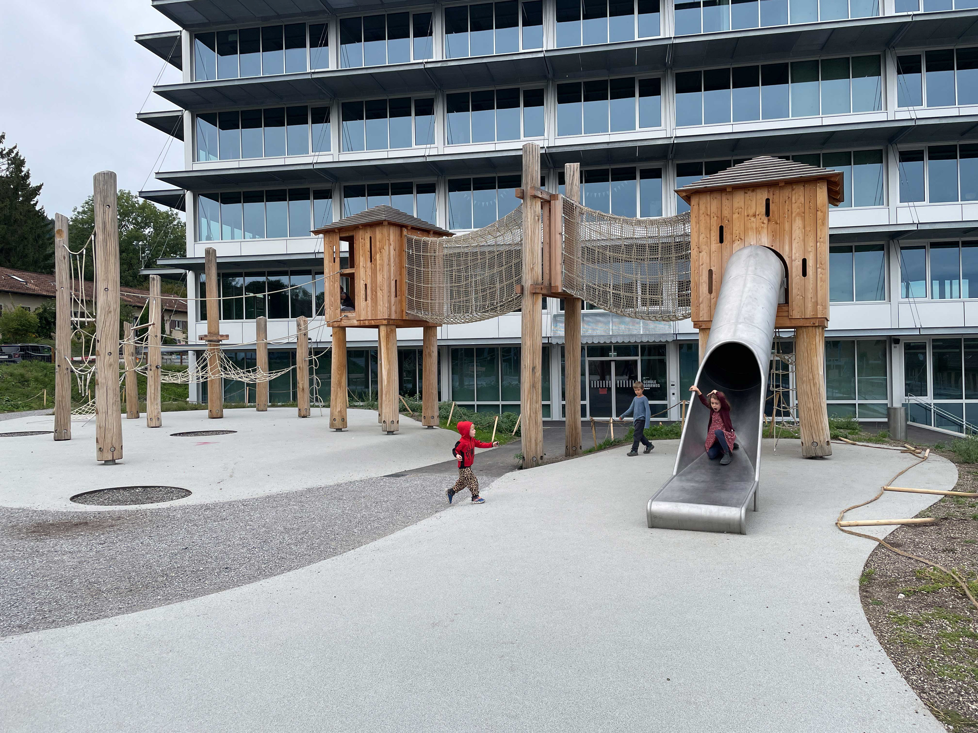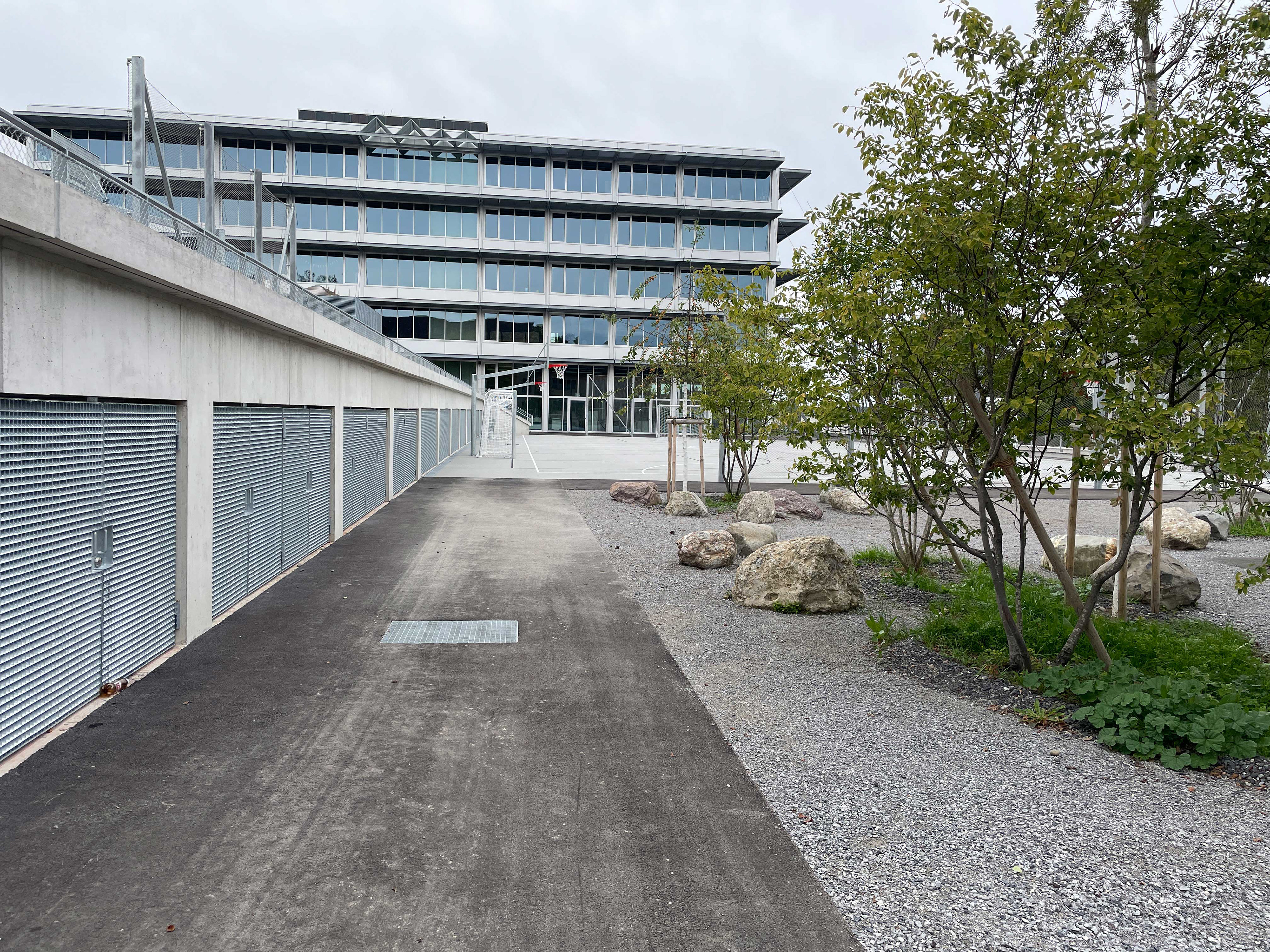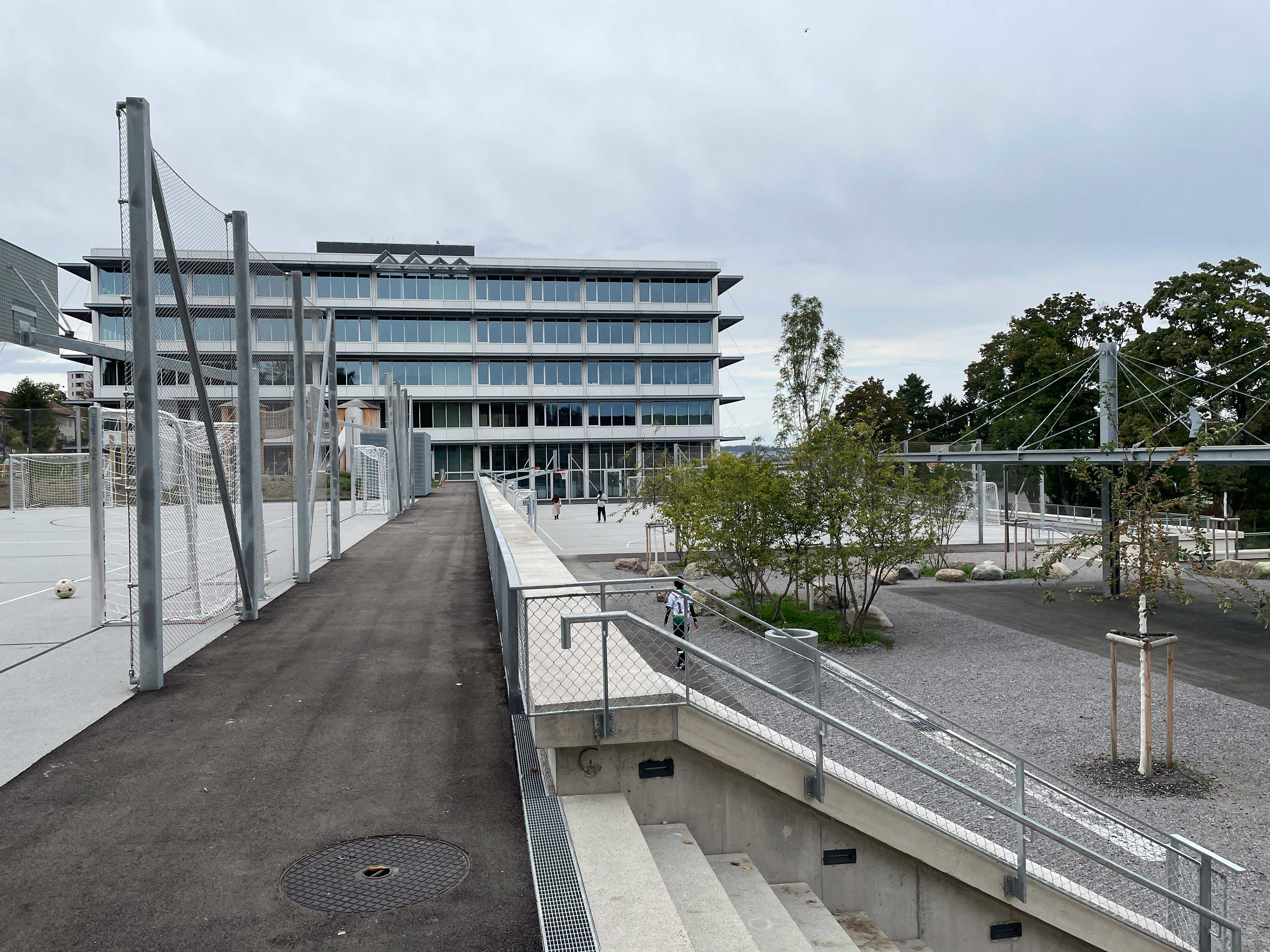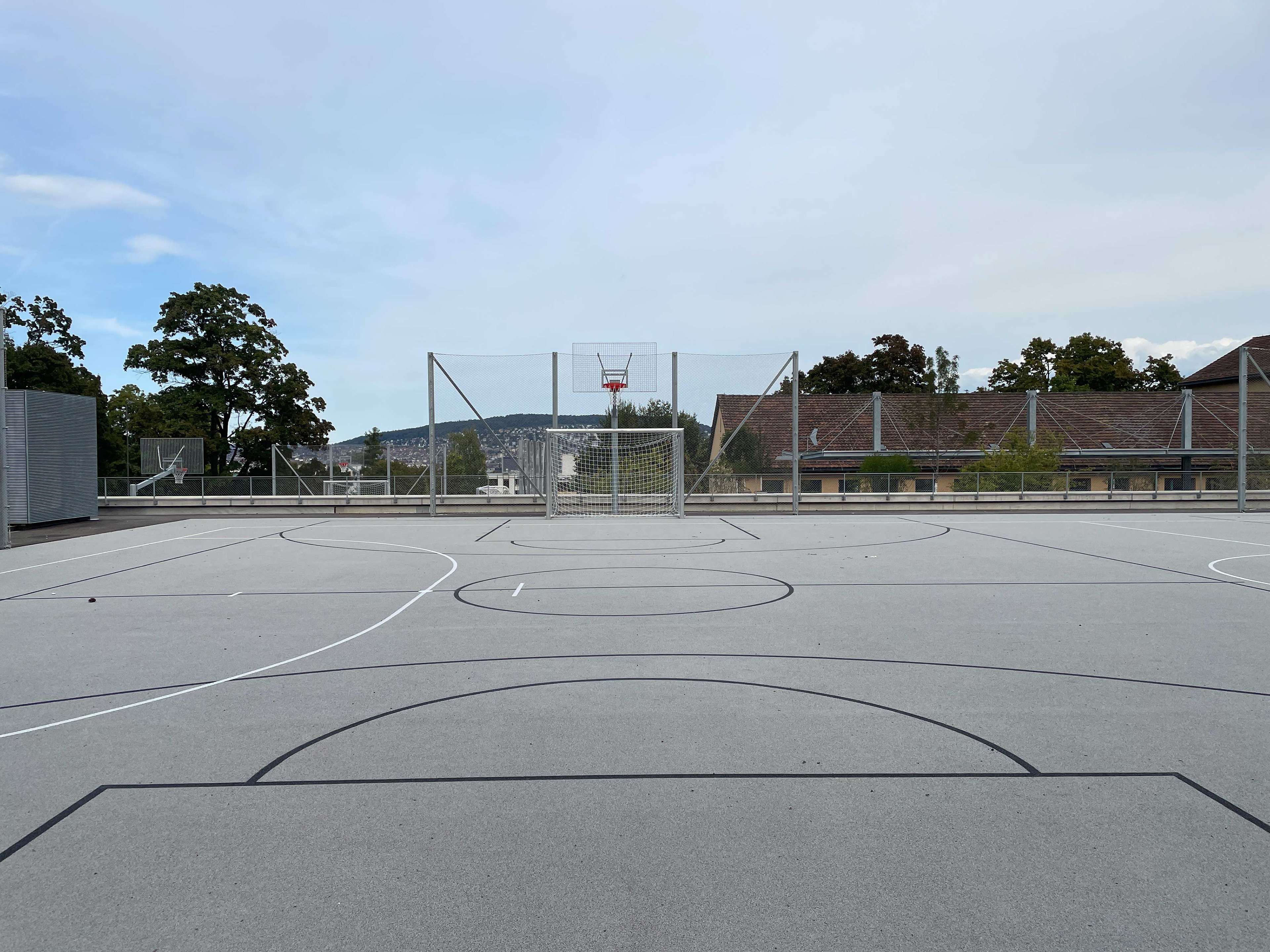 Um dem Bedarf an Aussensportflächen gerecht zu werden befindet sich auch auf dieser Ebene ein Allwetterplatz.