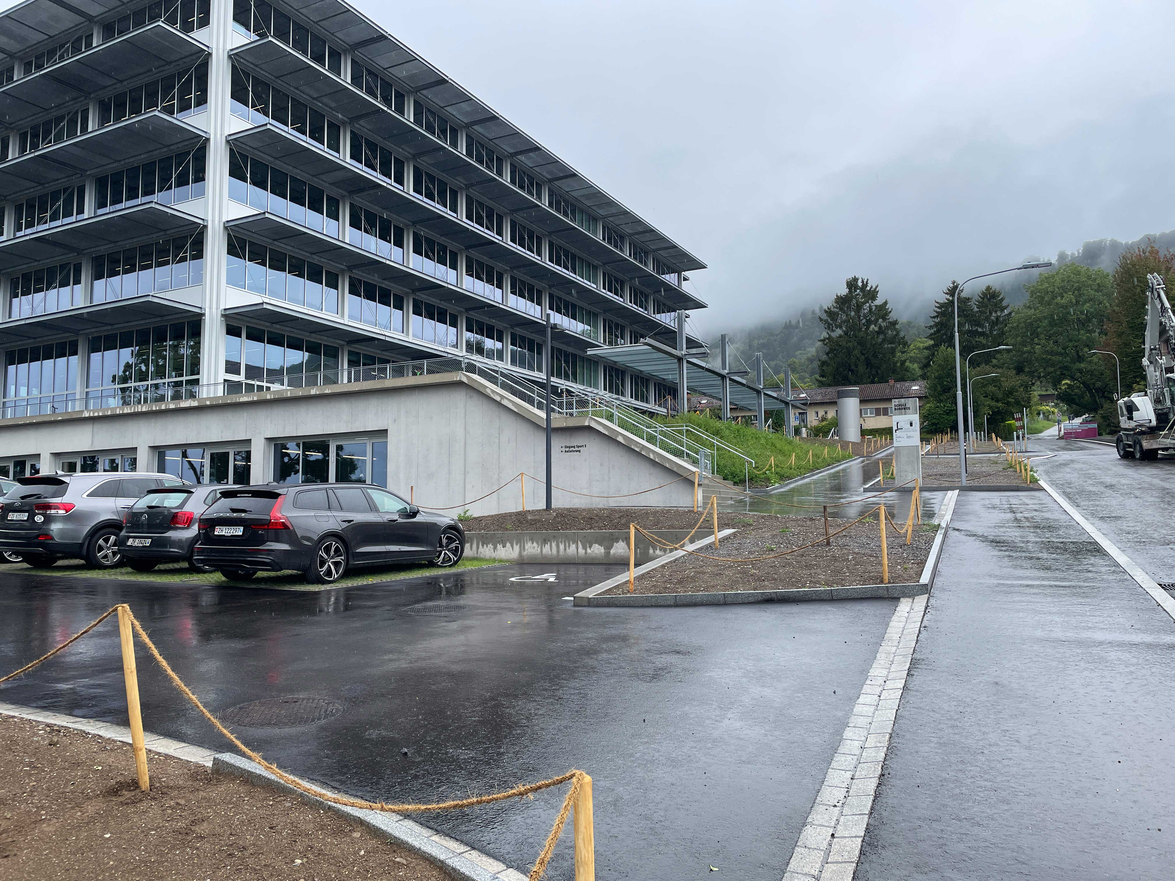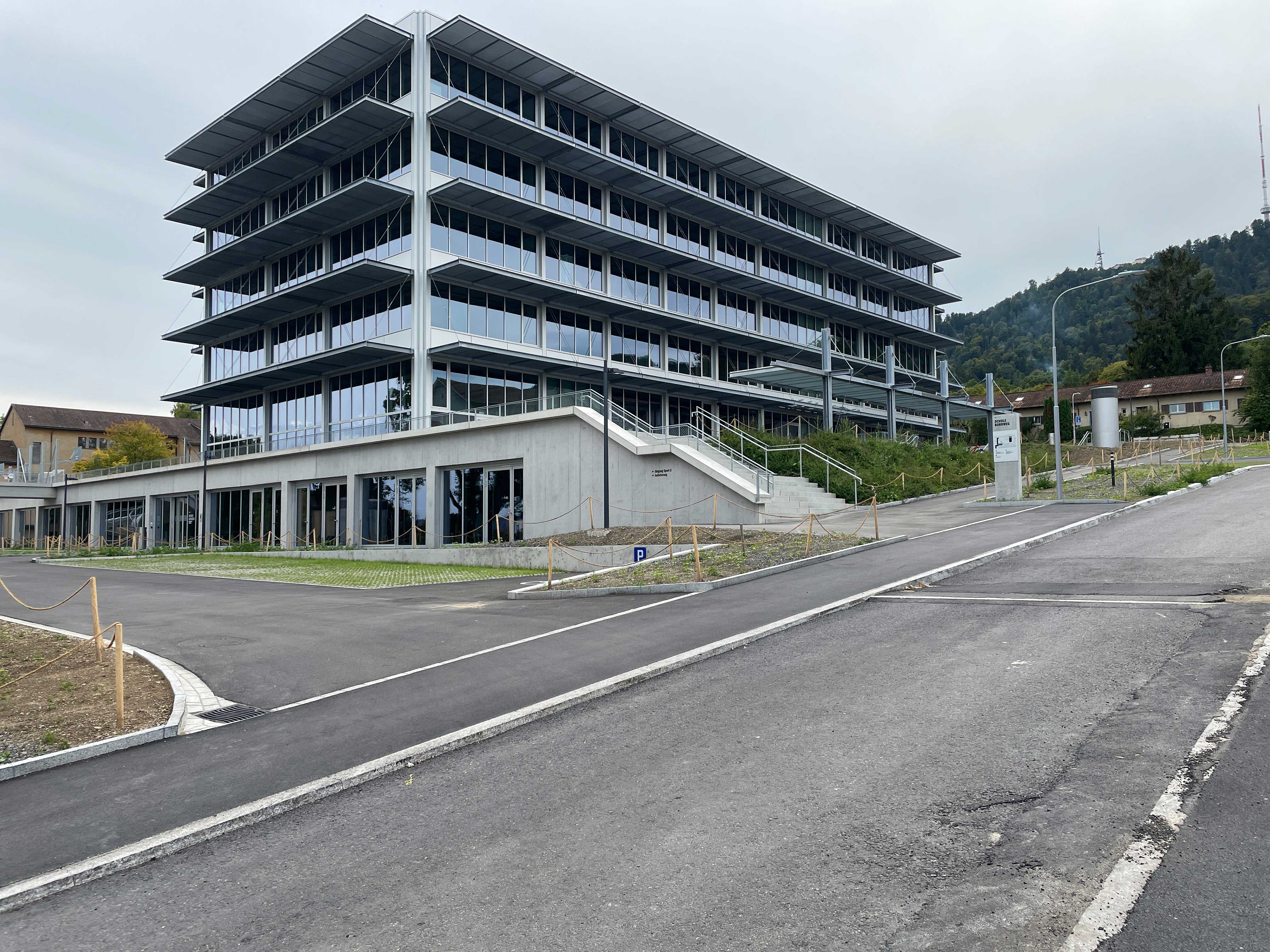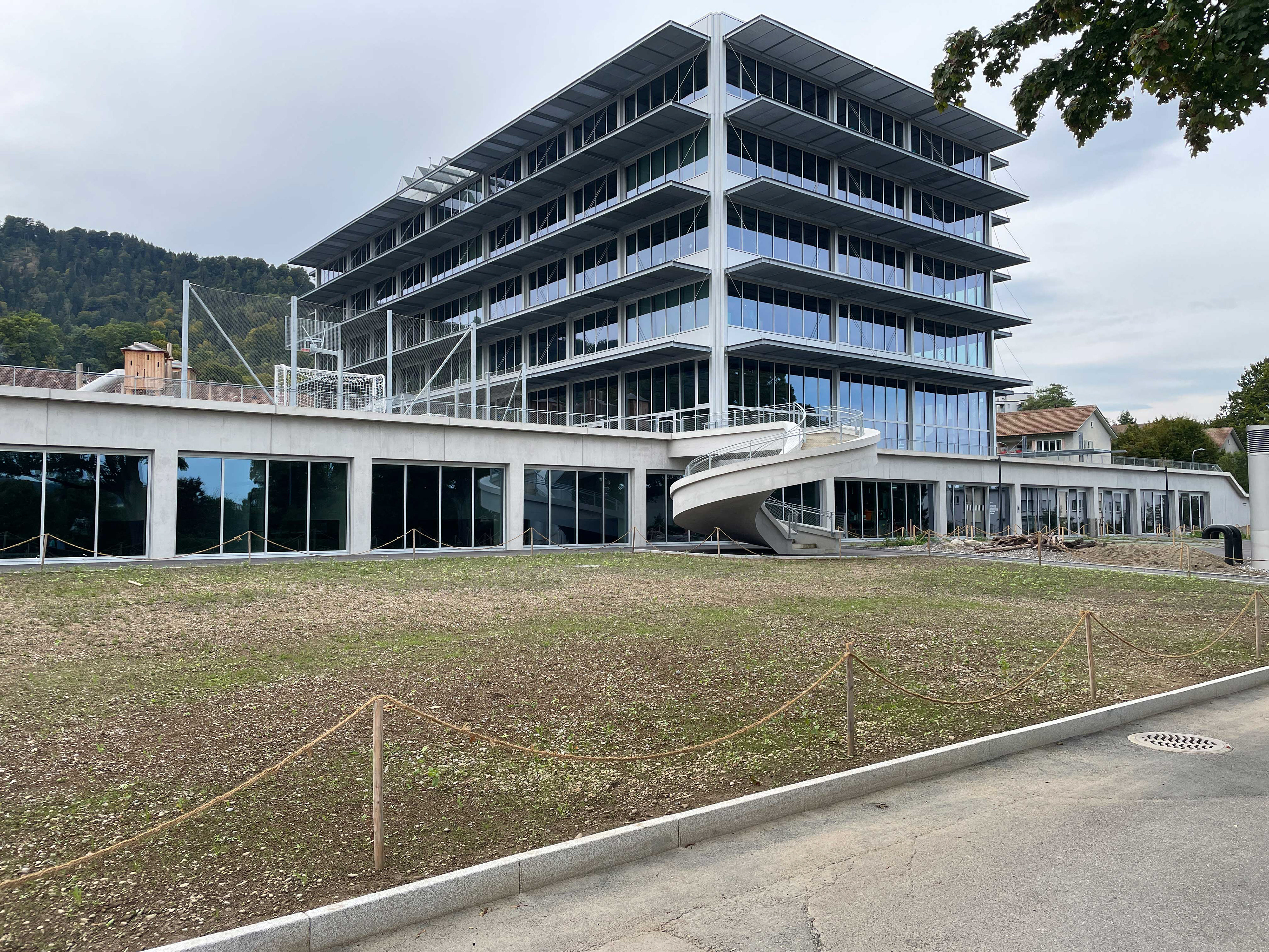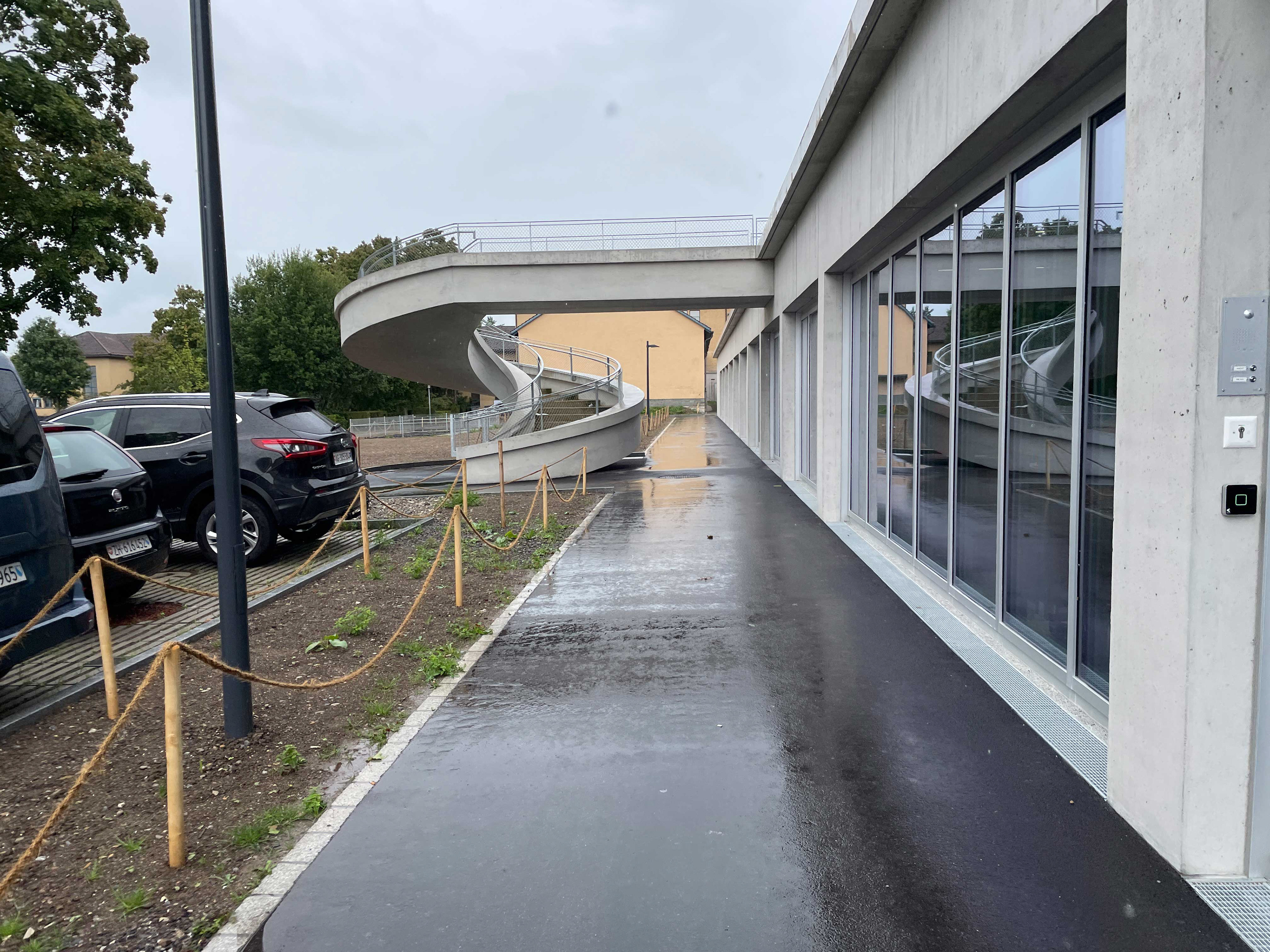 Strassenseitig des Gebäudes ist ein Pausenplatz für die Lehrer mit entsprechenden Sitzmöglichkeiten vorgesehen.