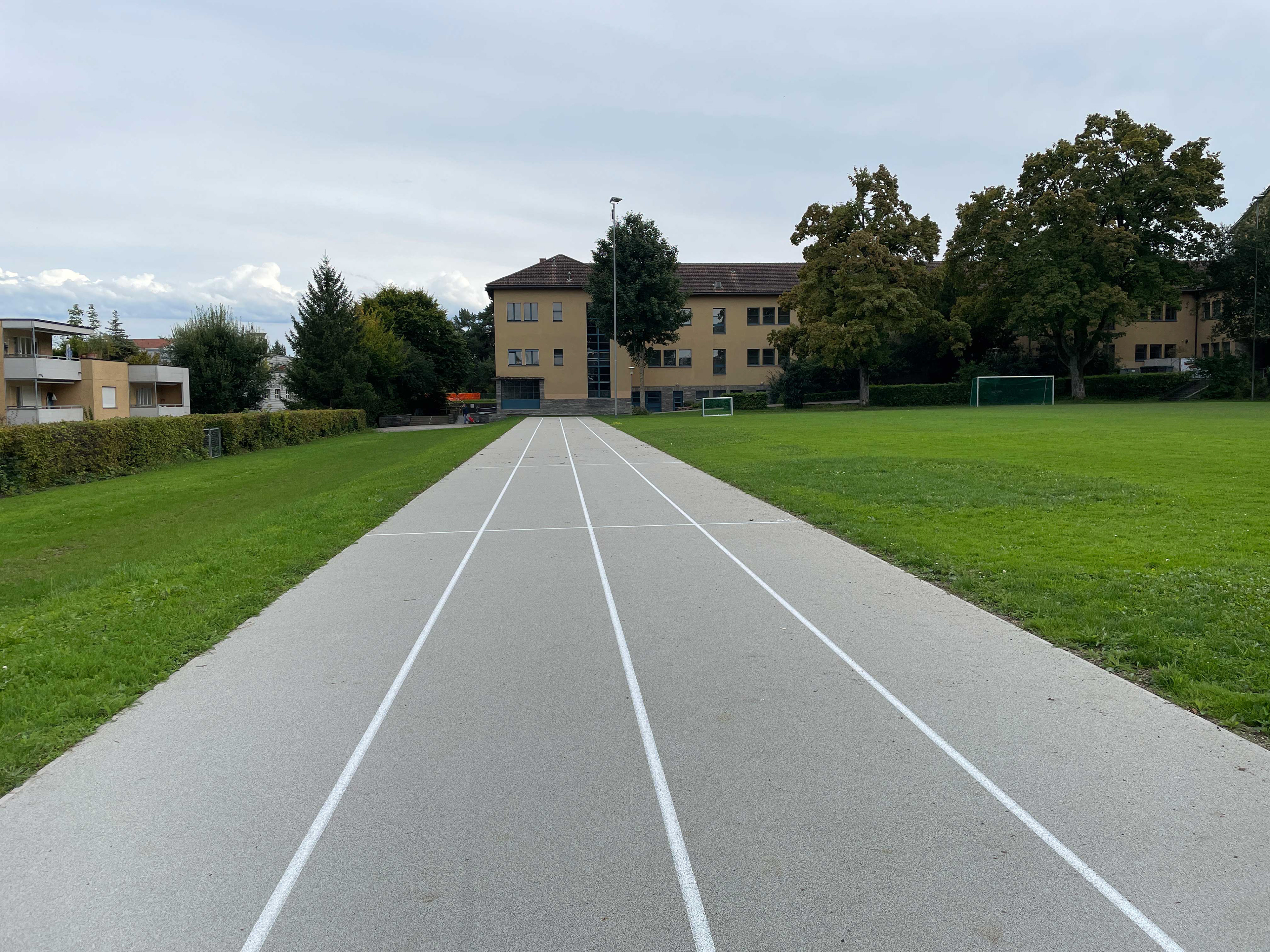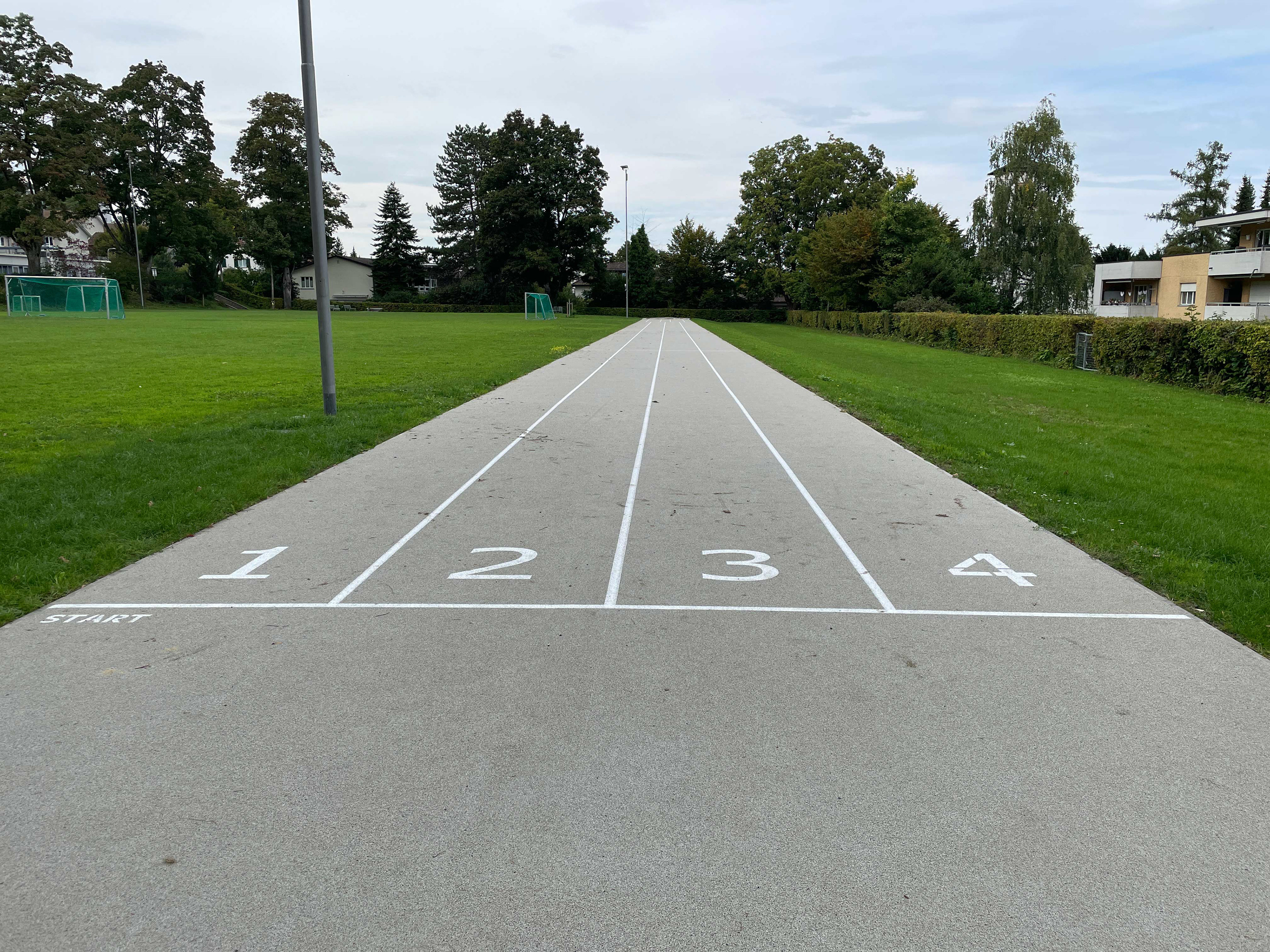 Abgerückt vom eigentlichen Projektperimeter wird am Rande der bestehenden Spielwiese eine Laufbahn mit Weitsprunggrube erstellt.
