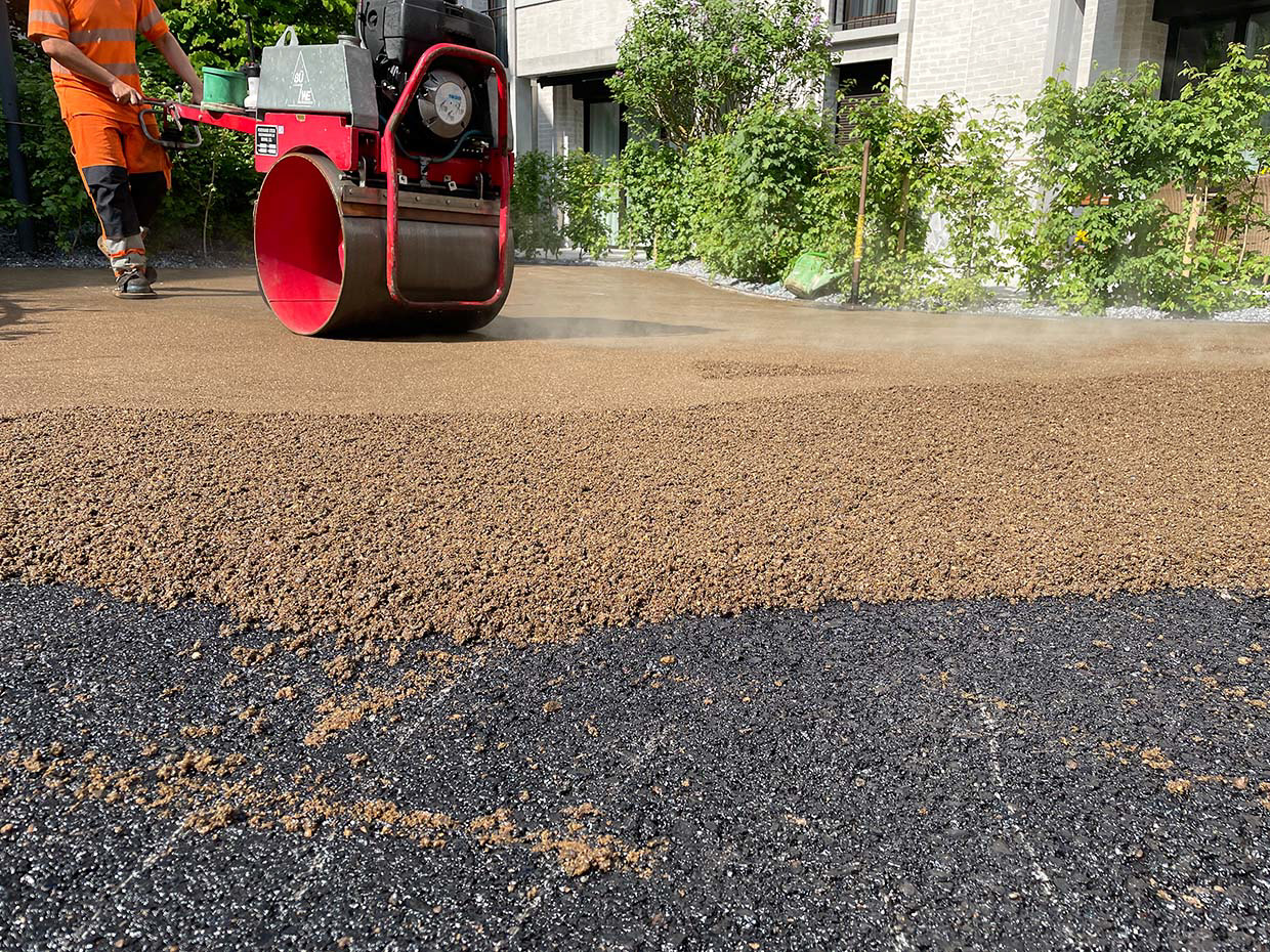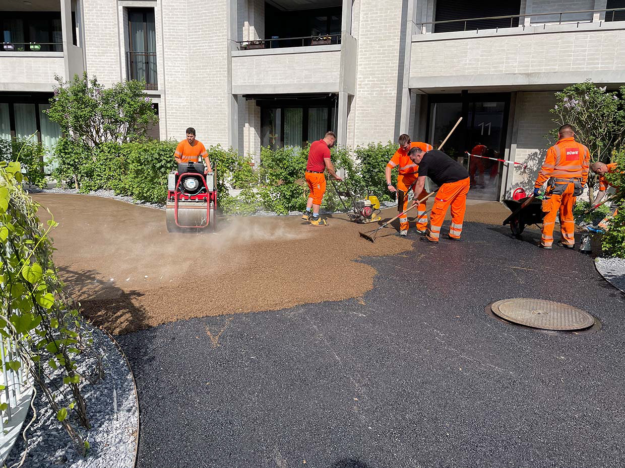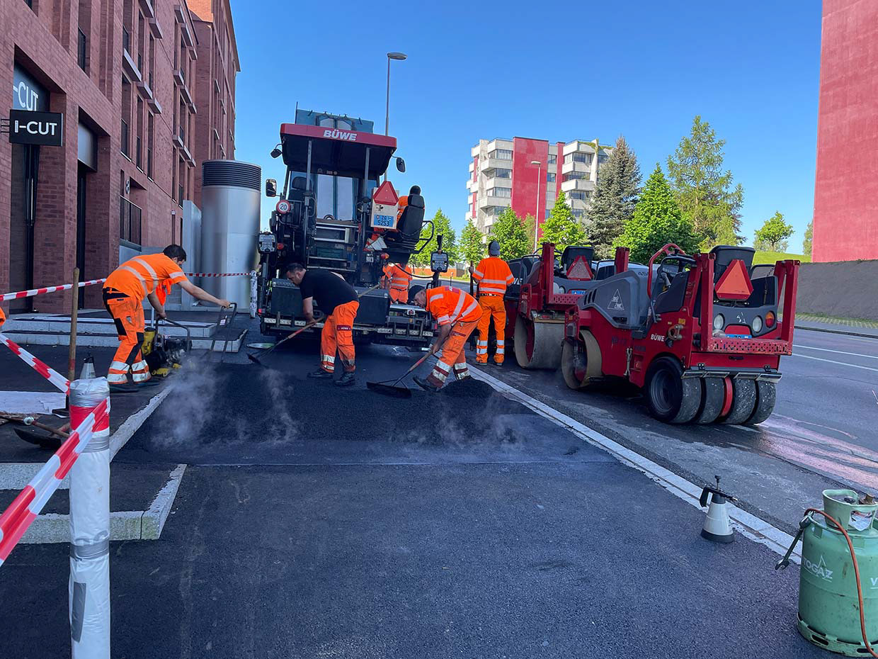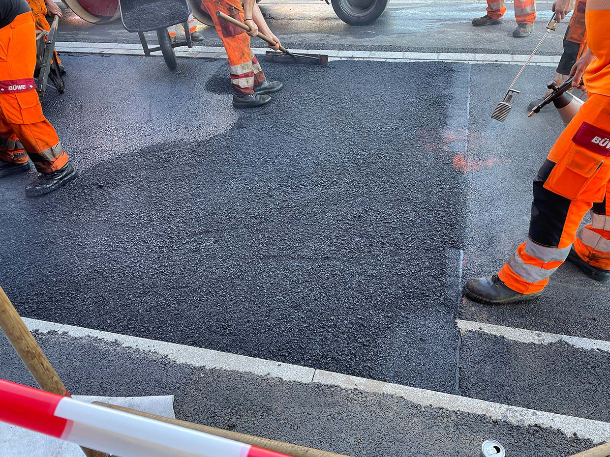 Bei idealen Witterungsbedingungen kann mit dem Einbau der Asophaltdeckschichten begonnen werden.