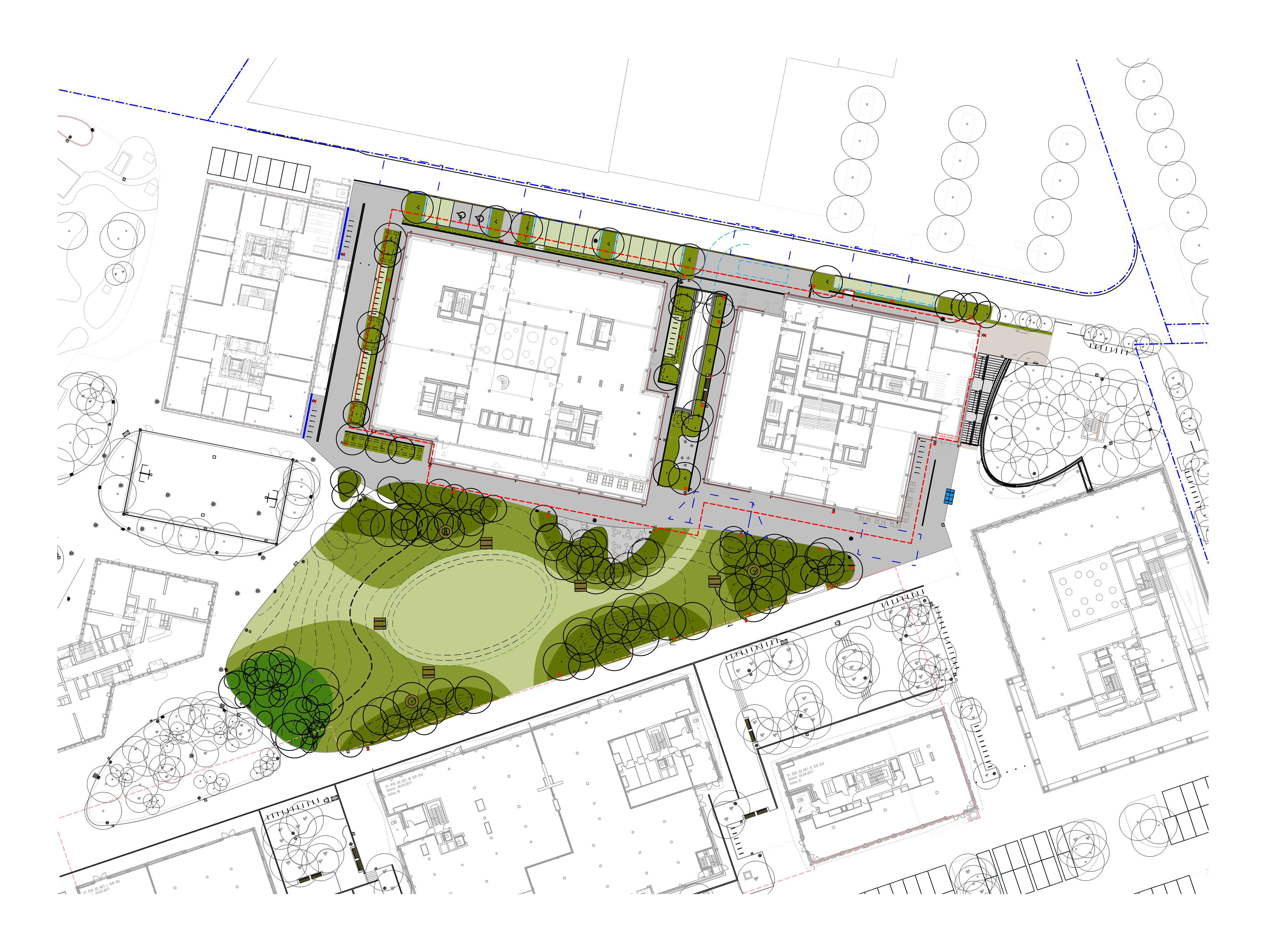 Nach Fertigstellung der Gebäude wird der zentrale Park als grünes Herzstück der Überbauung Suurstoffi Ost erstellt.